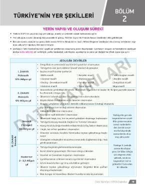 • Dönemin sonunda Anadolu Yarımadası toptan yükselmeye başla- zamanlarda oluş-