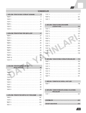 1. BÖLÜM: TÜRKİYE’NİN COĞRAFİ KONUMU � � � � � � � �5 TEST 5 . . . . . . . . . . . . . . . . . . . . . . . . . . . . . . . . . . . . . . . 117