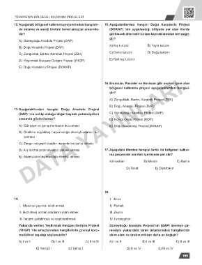 12� Aşağıdaki bölgesel kalkınma projelerinden hangisin- 15� Aşağıdakilerden hangisi Doğu Karadeniz Projesi