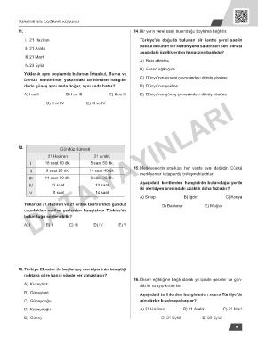 rinde güneş aynı anda doğar, aynı anda batar? D) Dünya’nın şekline