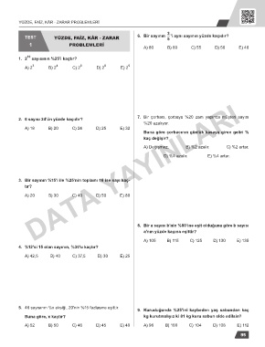 TEST YÜZDE, FAİZ, KÂR - ZARAR 6� Bir sayının 5 'i aynı sayının yüzde kaçıdır?