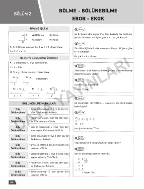 A B A: Bölünen B: Bölen ab iki basamaklı sayısı 2’ye tam bölünüp 5’e bölündü-