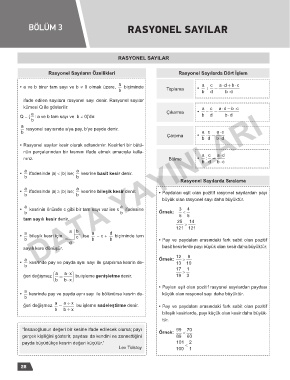 Q = ( : a ve b tam sayı ve b ≠ 0)’dır.