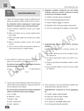 . 4� Aşağıdaki cümlelerin hangisinde altı çizili kelime