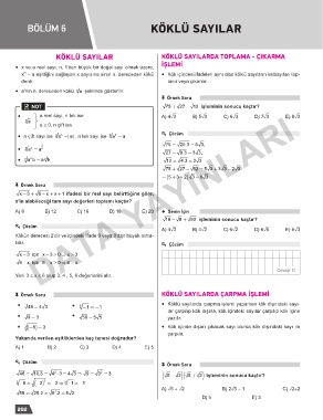 • 48 = 4 3 • 5 − =−1 1 • Köklü sayılarda çarpma �şlem� yaparken kök dışındak� sayı-