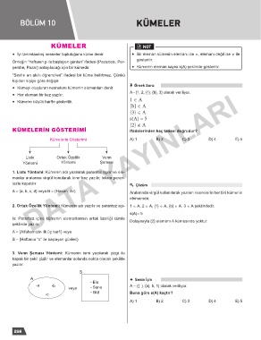 lır. Parantez �ç�ne kümen�n elemanlarının ortak özell�ğ� cümle Dolayısıyla {2} elemanı A kümes�nde yoktur.
