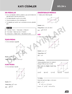 • Alt ve üst tabanları b�rb�r�ne paralel ve yan yüzler� tabanlara • Bütün yüzler� d�kdörtgend�r.