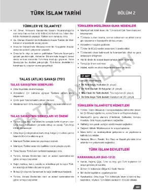 • Türkler, Abbasi Devleti’nin idari ve askeri kademelerinde • Karahanlılar, Orta Asya Türk kültürüyle İslam kültürünü kay-