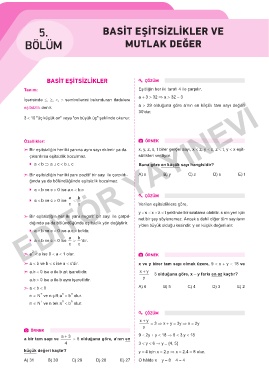 ² Bir eşitsizliğin her iki yanına aynı sayı eklenir ya da x, y, z, s, t birer gerçel sayı, x < z, y < s, z < t, y < x eşit-