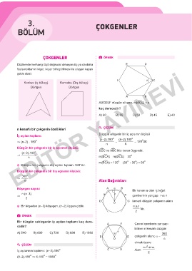 İç açılarının toplamı : (n-2).180 C D Alan: 2