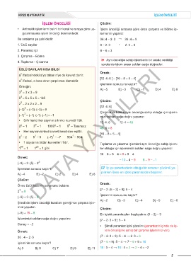 • Aritmetik işlemlerin belirli bir kural ve sıraya göre uy- İşlem önceliği sırasına göre önce çarpma ve bölme iş-