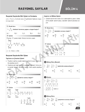 a, b ∈ Z ve b ≠ 0 olmak üzere; şeklindeki ifadelere rasyo- • Çarpma işleminde varsa önce sadeleştirme yapılır. Daha