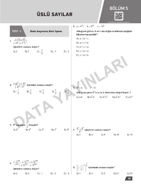 TEST - 1 Üslü Sayılarla Dört İşlem olduğuna göre a, b ve c nin doğru sıralaması aşağıda-