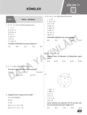 TEST - 1 Küme - Alt Küme I. a ∈ B