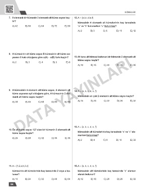 yısının 8 katı olduğuna göre s(A) - s(B) farkı kaçtır? 13� 64 tane alt kümesi bulunan bir kümenin 2 elemanlı alt