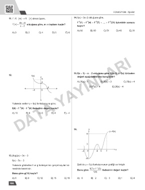 Yukarıda gösterilen f ve g fonksiyonları gerçel sayılar kü- Şekilde y = f(x) fonksiyonunun grafiği verilmiştir.