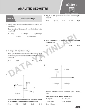 lardan hangisinin koordinatları yanlış verilmiştir? C) II. Bölgede D) III. Bölgede