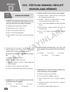 6� Aşağıdakilerden hangisi Osmanlı’da Duraklama Dö-