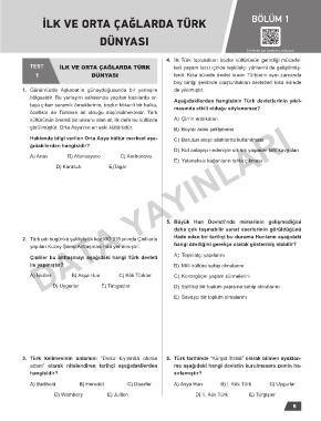 3� Türk kelimesinin anlamını “Deniz kıyısında oturan 6� Türk tarihinde “Kürşat İhtilali” olarak bilinen ayaklan-