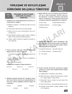 TEST YERLEŞME VE DEVLETLEŞME lerin yer ve otlak bulamamaları, devletin onlara sa-