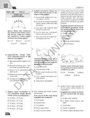 4. Aşağıda verilenlerden hangisi Tür- 7. Türkiye, Kuzey Yarım Küre’de ve Orta