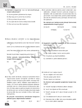 18� Cümlelerin hangisinde “-ma / -me” eki isim-fiil eki gö- 21� Bir yerlerden, belki de eskimiş evlerin aralarından, ses-