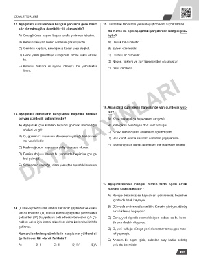 12� Aşağıdaki cümlelerden hangisi yapısına göre basit, 15� Duvardaki tabloların yerini değiştirmedim hiçbir zaman.