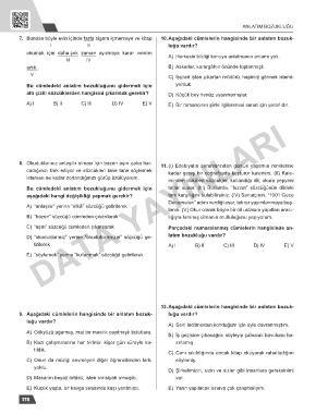 8� Okuduklarınız anlaşılır olması için bazen aşırı çaba har- 11� (I) Edebiyatın sorunlarından günlük yaşamın renklerine