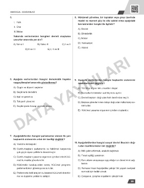 6� Aşağıda verilenlerden hangisi demokratik hayatın 9� Aşağıda verilenlerden hangisi başkanlık sisteminin