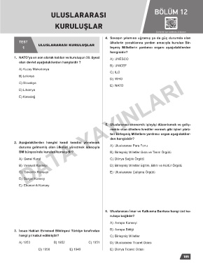 1 ULUSLARARASI KURULUŞLAR leşmiş Milletlerin yardımcı organı aşağıdakilerden