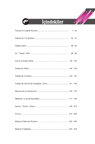 Bölgeler Coğrafyası ......................................................................... 235 - 244