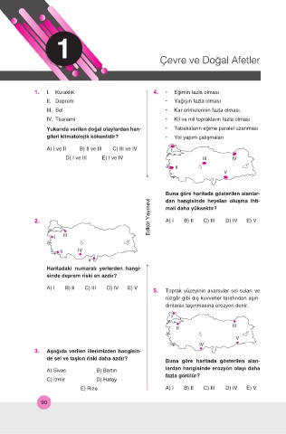 A) I B) II C) III D) IV E) V 5. Toprak yüzeyinin akarsular sel suları ve