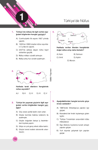 1. Türkiye’nin nüfusu ile ilgili verilen aşa- 4.