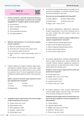 C) İçerik belirleme 6. Bu program değerlendirme yaklaşımında, öğrencilere,
