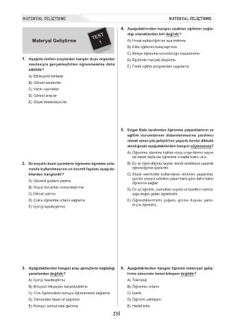 3� Aşağıdakilerden hangisi araç-gereçlerin sağladığı 6� Aşağıdakilerden hangisi öğretim materyali geliş-