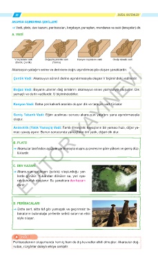 ˇ Vadi, plato, dev kazanı, peribacaları, kırgıbayır, peneplen, menderes ve seki (taraçalar) dir.