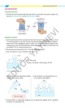 ˇ Cam borudaki sıvı yüksekliği, kullanılan sıvının özkütlesine bağlıdır. Sıvının özkütlesi