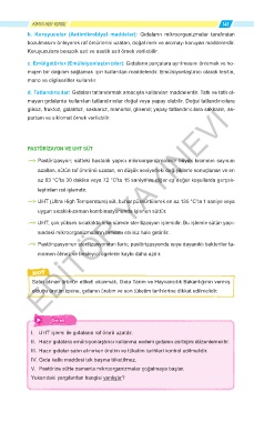 F Pastörizasyonun sterilizasyondan farkı; pastörizasyonda ısıya dayanıklı bakteriler ta-