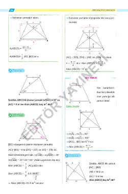 ˇ İkizkenar yamuğun alanı; ˇ İkizkenar yamukta köşegenler dik kesişiyor-