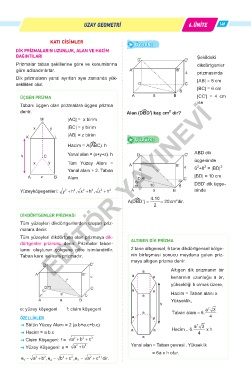 DİK PRİZMALARIN UZUNLUK, ALAN VE HACİM