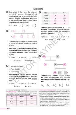 Yukarıda genotipleri verilen X, Y, Z, T ai-