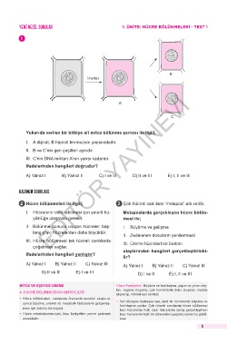 YENİ NESİL SORULAR 1. ÜNİTE: HÜCRE BÖLÜNMELERİ - TEST 1