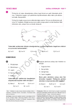 YENİ NESİL SORULAR DOĞAL SİSTEMLER - TEST 7