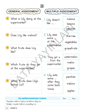 Does Lily like melons? 2. Lily sees cherries
