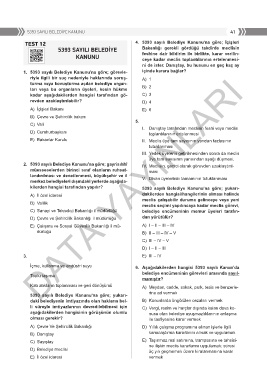 TEST 12 4. 5393 sayılı Belediye Kanunu’na göre; İçişleri