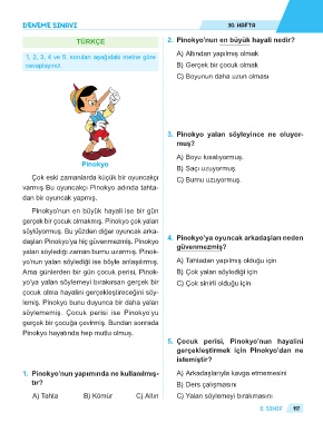TÜRKÇE 2. Pinokyo’nun en büyük hayali nedir?