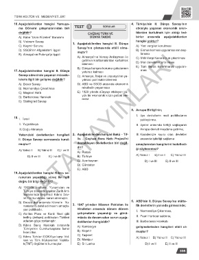 B) Enosis dar anlamda Kıbrıs’ın Yu- 6. ABD’nin II. Dünya Savaşı’na mütte-