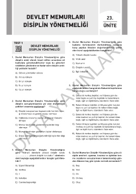 TEST 1 4. Devlet Memurları Disiplin Yönetmeliğine göre