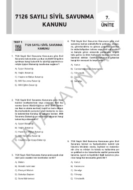 TEST 1 4. 7126 Sayılı Sivil Savunma Kanununa göre sivil