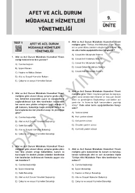 TEST 1 AFET VE ACİL DURUM 4. Afet ve Acil Durum Müdahale Hizmetleri Yönet-